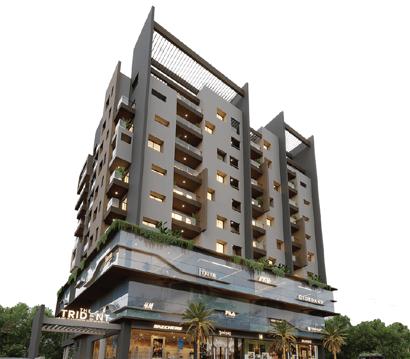. From the access-controlled entrance to the stylish designer lobby, every detail is crafted to perfection. Ascend in a sleek auto-door elevator to homes featuring premium vitrified flooring. Enjoy evenings on a balcony with glass railings. Or exploring the landscaped courtyard podium. We offer an exclusive selection of configurations, including 2BHK and 3BHK luxury apartments, along with commercial offices and shops. Whether you're looking for a sophisticated home or a prime business space, The Trident has been meticulously designed to elevate both living and working experiences.RERA NO. : P53000055980